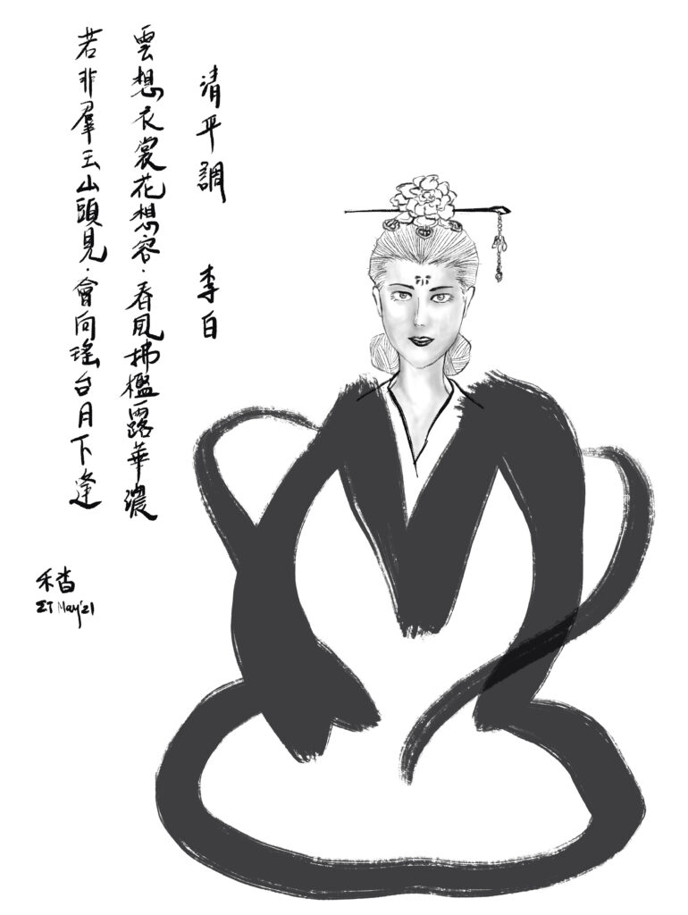 Creation video (~2 min) 清平調 李白雲想衣裳花想容春風拂檻露華濃若非群玉山頭見會向瑤臺月下逢