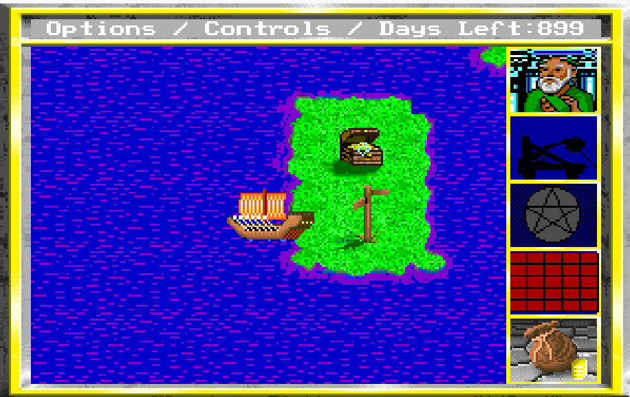 It’s a turn-based fantasy game, and as simply put by wikipedia, “The player leads the hero and his army across the four continents, acquiring up to 25 pieces of a map revealing the hidden location to the Sceptre of Order before King Maximus dies.”