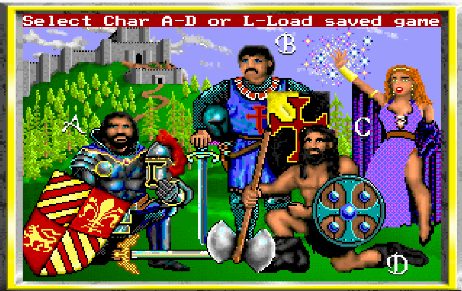 The player can pick from 4 hero types (Barbarian, Knight, Paladin, and Sorceress):