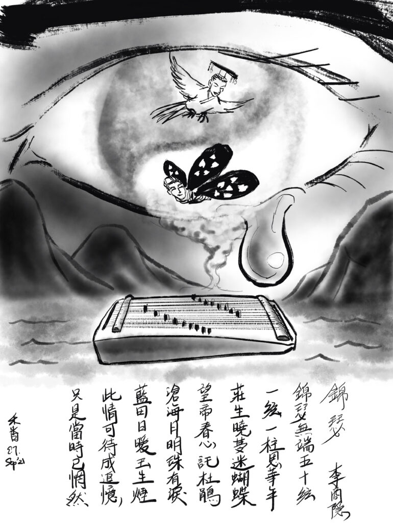 Creation Video (~2 min) 錦瑟 李商隱錦瑟無端五十絃一絃一柱思華年莊生曉夢迷蝴蝶望帝春心託杜鵑滄海月明珠有淚藍田日暖玉生煙此情可待成追憶只是當時已惘然