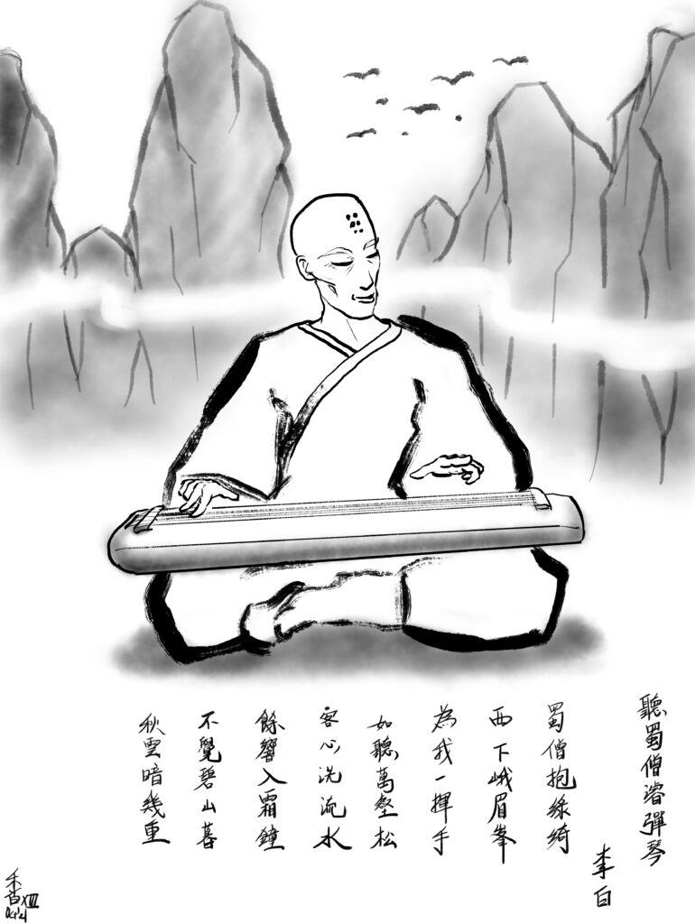 Sketching – 聽蜀僧濬彈琴, 李白 userblogs / By Enrique Creation video (~2 min) 聽蜀僧濬彈琴, 李白蜀僧抱綠綺西下峨眉峰為我一揮手如聽萬壑松客心洗流水餘響入霜鐘不覺碧山暮秋雲暗幾重