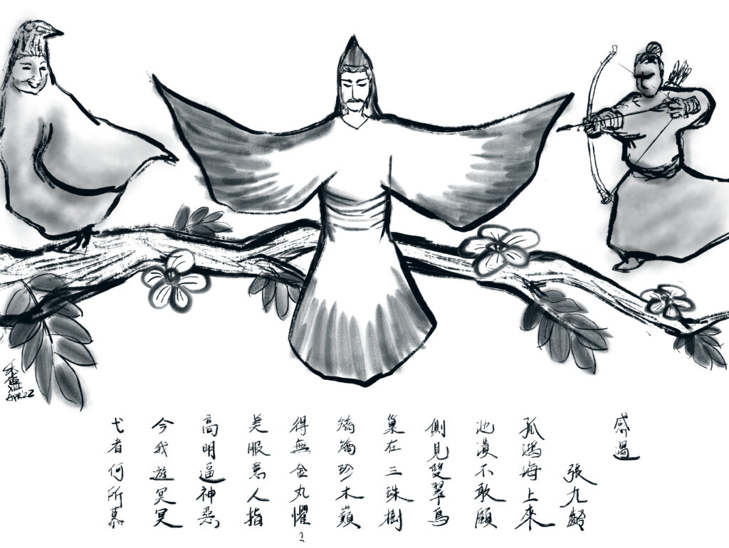 Creation video (~2 min) 感遇, 張九齡孤鴻海上來池潢不敢顧側見雙翠鳥巢在三珠樹矯矯珍木巔得無金丸懼美服患人指高明逼神惡今我遊冥冥弋者何所慕