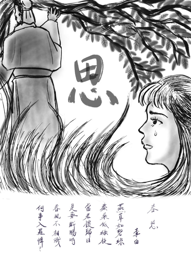 Sketching – 唐詩三百首 – 春思, 李白