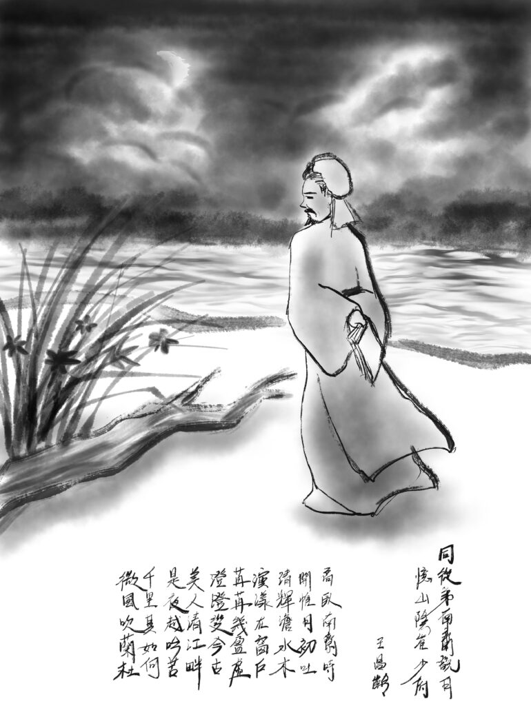 Sketching – 唐詩三百首 – 同從弟南齋翫月憶山陰崔少府, 王昌齡