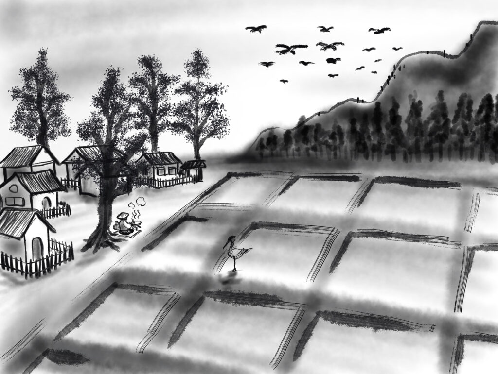 Creation video ~2.5 min 積雨輞川莊作 王維積雨空林煙火遲蒸藜炊黍餉東菑漠漠水田飛白鷺陰陰夏木囀黃鸝山中習靜觀朝槿松下清齋折露葵野老與人爭席罷海鷗何事更相疑?